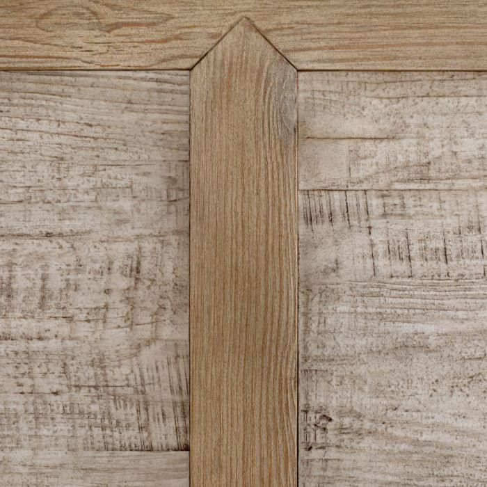 Bring effortless warmth and timeless style to your bedroom with this beautifully crafted panel bed. Featuring a light, natural wood finish, the design highlights clean lines and wide panel detailing on both the headboard and footboard, creating a balanced look that feels both substantial and inviting. The softly textured wood grain adds depth and character, while the sturdy frame provides reliable support for everyday comfort. With its relaxed elegance and versatile silhouette, this bed complements a range of interiors—from modern farmhouse and coastal to transitional and contemporary spaces. Designed to be both durable and visually calming, this bed serves as a refined foundation for a serene and thoughtfully styled bedroom. Available in King or Queen. Coordinating Roux nightstands and dresser available. Material: Reclaimed Pine Wood Finish: Light and Grey Warm Wash Finish Queen- Width: 63 in Depth: 84.5 in Height: 60 in King- Width: 78 in Depth: 84.5 in Height: 60 in