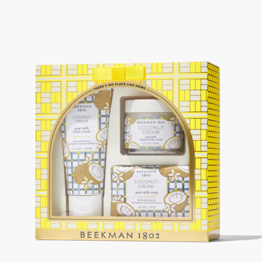 Featuring three travel-sized bodycare bestsellers powered by clinical grade goat milk and our relaxing, microbiome-friendly Coconut Cream fragrance to deeply hydrate and nourish the skin without irritation. Scented with notes of creamy coconut, delicate vanilla blossom, and fresh morning dew, this set is the ultimate escape to a winter wonderland of comfort, calm, and pampering.