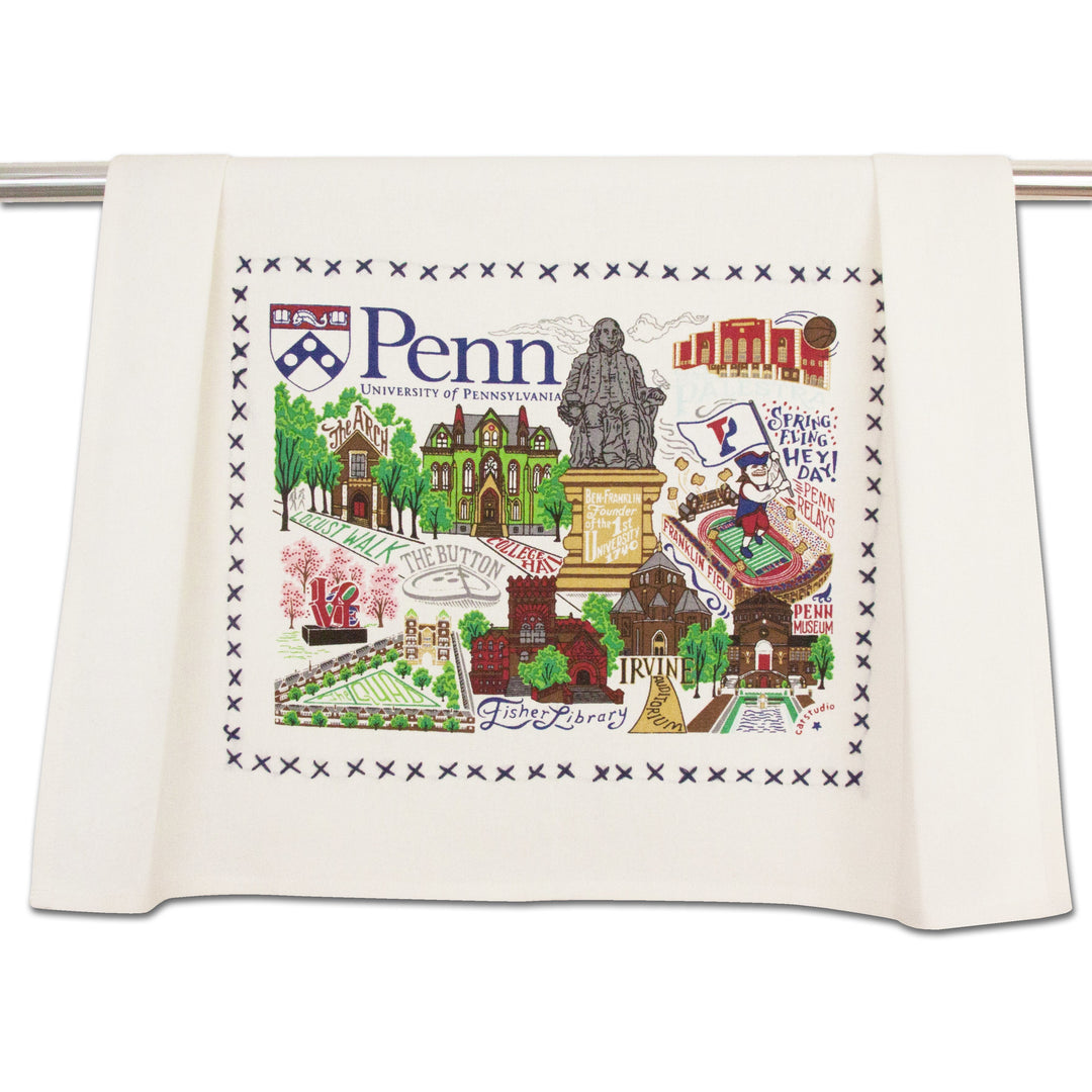 Our original design is printed using the labor intensive hand-swipe silk-screen process with 12 colors (that's 12 screens used for each towel!). The design is framed with a hand-embroidered border on a 100% hand-loomed cotton towel generously sized at 20x29 inches. All this delightfully presented in a fab organdy re-usable pouch ready for gifting!