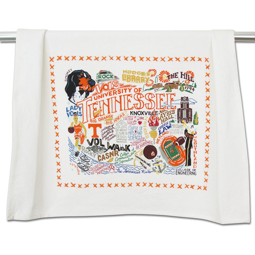 Our original design is printed using the labor intensive hand-swipe silk-screen process with 12 colors (that's 12 screens used for each towel!). The design is framed with a hand-embroidered border on a 100% hand-loomed cotton towel generously sized at 20x29 inches. All this delightfully presented in a fab organdy re-usable pouch ready for gifting!