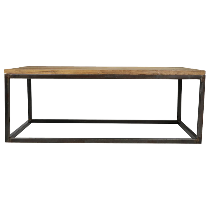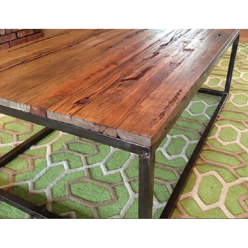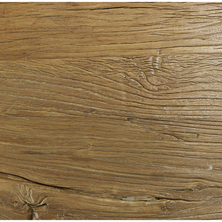 Elm doors sourced from China have been reconstructed and re-purposed as durable and stylish tables. Wood in a rich, natural finish is affixed to a welded industrial, gun-metal base. Texture and finish vary. 52 x 32 x 19½