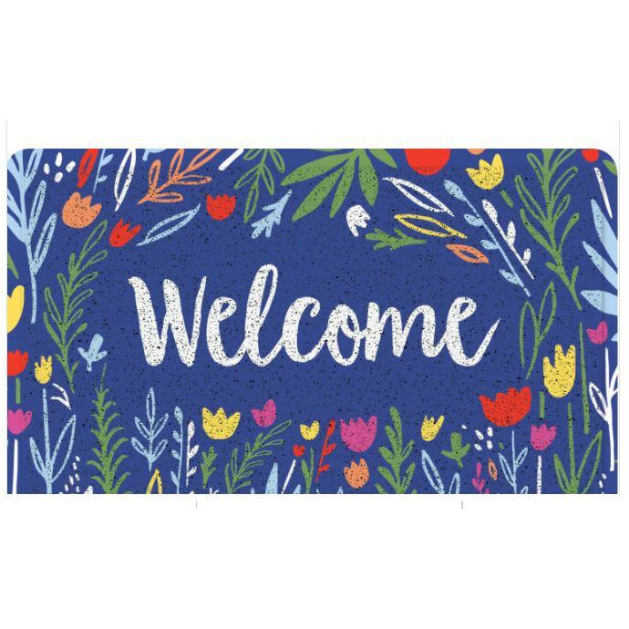 Floral Framed Welcome Antimicrobial PVC Loop Mat. Rise off w/ hose. Hang to dry.