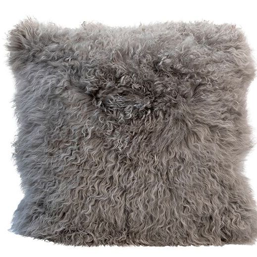 This 16 x 16 pillow is made of lamb fur and polyester insert. Add interest to any sofa, bench, chair or bed with this neutral light grey color.