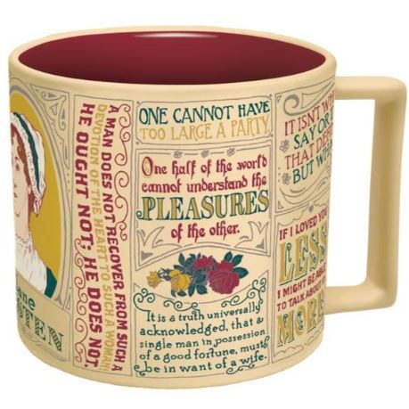 The Jane Austen mug is just the thing for women of independent means and superior men. It features Jane's image as well as a collection of quotes and excerpts from her work. The mug makes a welcome addition to your café culture. Enjoy coffee in the morning, afternoon tea, or hot chocolate at bedtime – and never be far from the writer you love. Comes in its own gift box. Holds 12 oz / 350mL. Dishwasher and microwave safe.