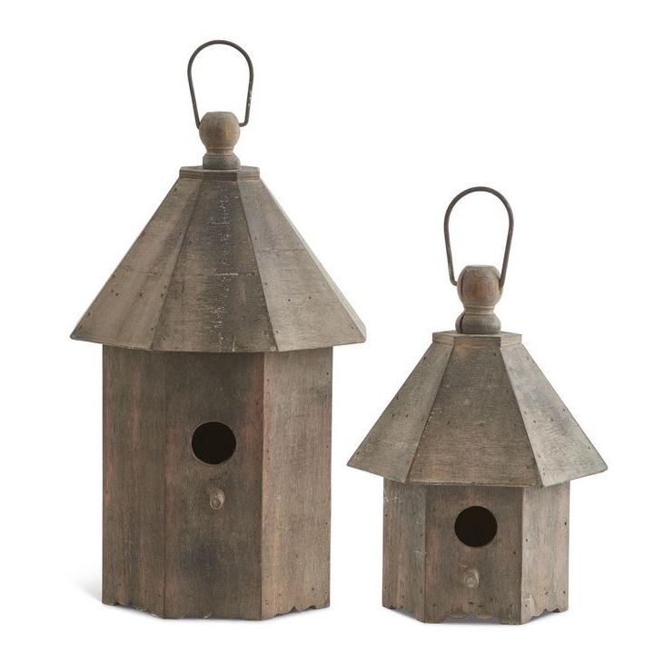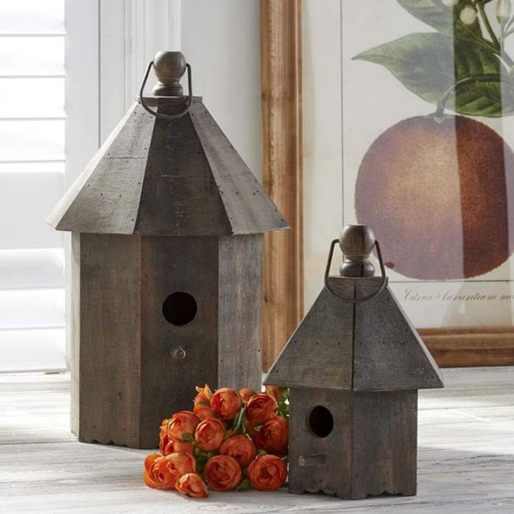 Hanging wooden birdhouse. Listing is for one large birdhouse. 16 inches high.