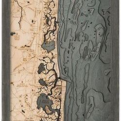 13.5" x 43". WoodChart's beautiful map of the South Jersey Shore. A 3-D nautical wood map featuring the shoreline of Southern New Jersey. Famous for its many boardwalks with arcades, water parks, and amusement parks boasting hundreds of rides and attractions, the Jersey Shore is a popular vacation spot for New Jerseyans, New Yorkers, Pennsylvanians, and vacationers from various other states in the Northeast. Our South Shore chart extends from Brigantine and Atlantic City in the north, to Cape May in the south. Points of Interest Include: Absecon Bay, Atlantic City, Beaver Swamp Wildlife Management Area, Cape May, Cape May National Wildlife Refuge, Diamond Beach, Egg Harbor, Gull Island, Linwood, Ludlum Bay, Margate City, Northfield, Ocean City, Pleasantville, Sea Isle City, Ventnor City and Wildwood. Our wood charts are made from Baltic birch and have a solid wood frame, and come ready to hang. Frame Styles: Classic, Dark Brown Frame, Greenish-Blue Water Color or Rustic Grey Frame, Greyish-Blue Water Color. Unfortunately we can not offer free shipping on this item. Please call the store to order and arrange shipping. 609-688-0777.