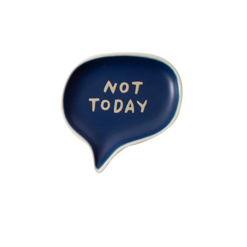 Word bubble tray featuring exclusive artwork by Martha Rich with matte navy glaze, decal art, and exposed stoneware base.