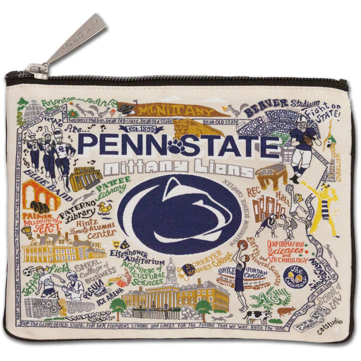 Our original design is uniquely woven (not printed!) into a handy-sized zip pouch - perfect for toting your keys, cash & credit cards, cosmetics - all your small necessities! Complete with chic zipper and pull, and our signature Collegiate black lining. Conveniently sized at 5x7 inches.