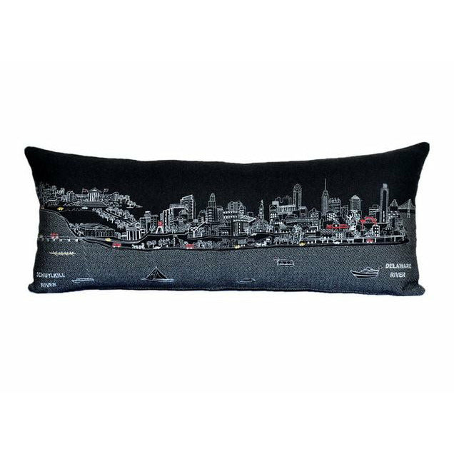 Philadelphia is the largest city in the Commonwealth of Pennsylvania, the birthplace of the nation and we have depicted it on one of our most popular pillows. Our exclusive embroidered pillow captures the historical and modern Philadelphia attractions with subtle hints of color. Pillow has a red zipper at the bottom.