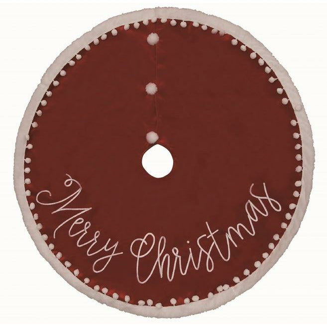 Red Pom Pom Tree Skirt. Dimensions: 48" l x 48" w x 1" h.
